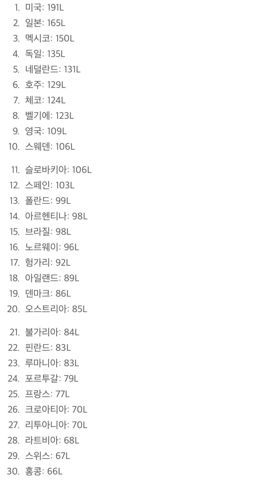 아마도 저 수치가 상수도가 깨끗한 나라가 하위권일듯