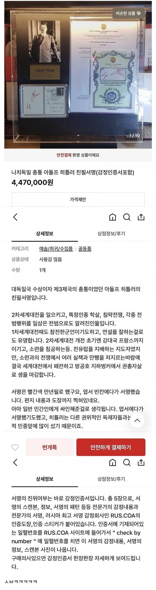 번개장터와 같은 국내 중고 거래 플랫폼에서도 히틀러 관련 우표나 서명이 포함된 물품이 수천 원에서 수백만 원대까지 다양한 가격으로 거래되는 것을 확인할 수 있습니다. 다만, 이러한 개인 간 거래에서는 진품 여부를 신중하게 확인해야 합니다.